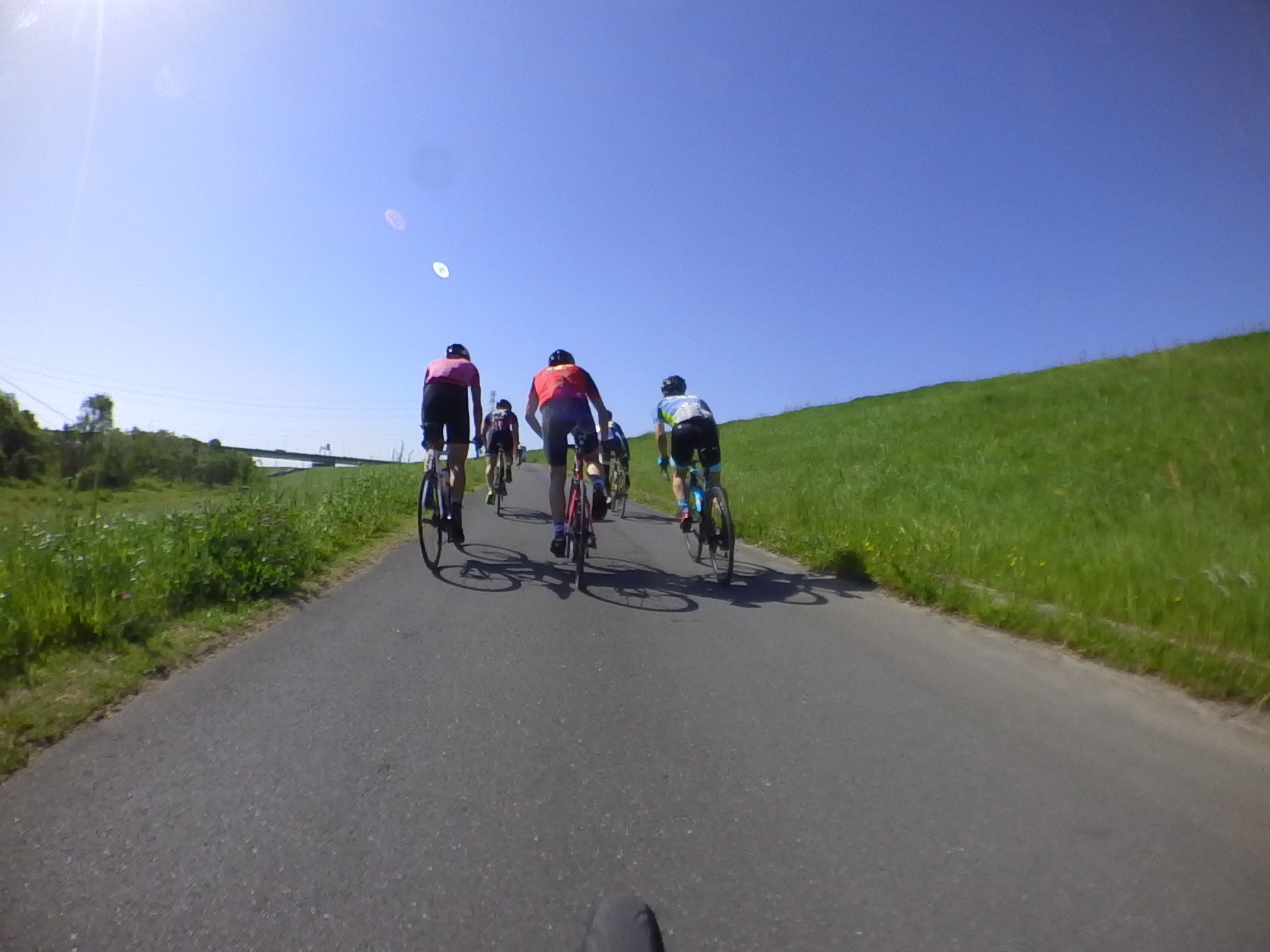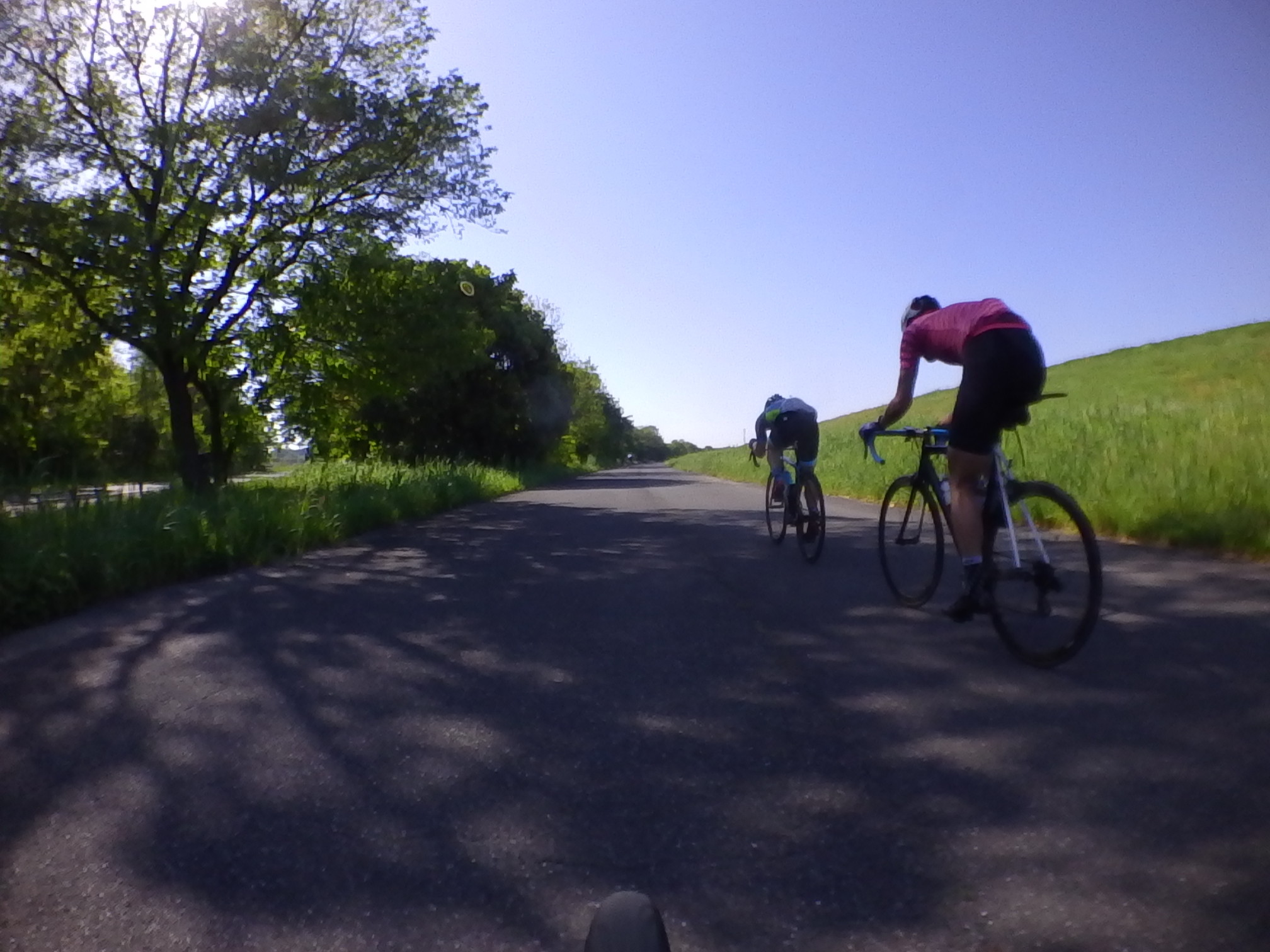 土手上の立ち上がりダッシュと向かい風がキツイので、前々で立ち上がるようにしていて気が付いたら竜田さんと2人になっていた。