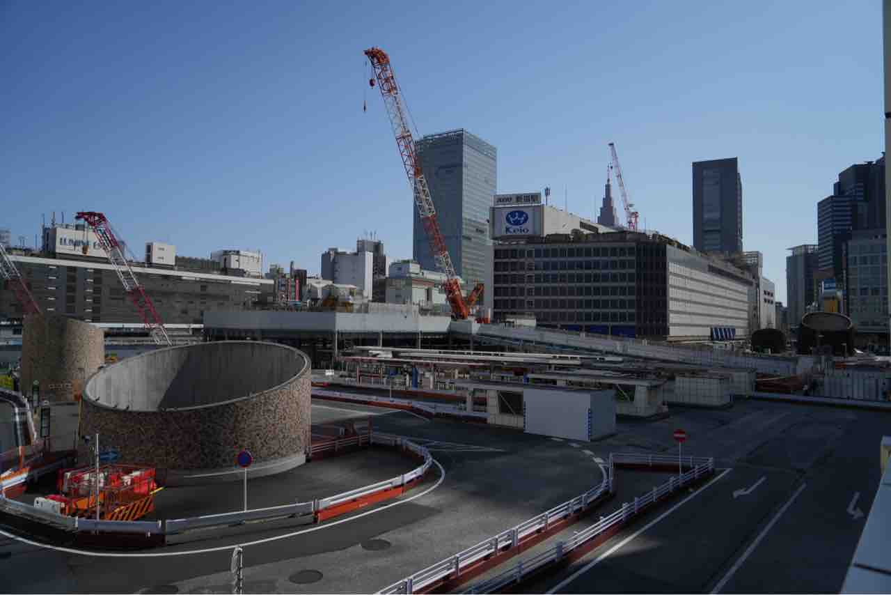 新宿駅周辺は再開発途中で、アルタは閉鎖中で西側に続く道路も閉鎖されています。