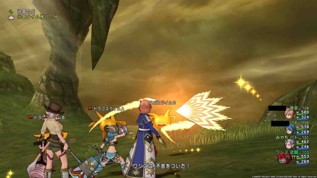 ハンバトなのでドラゴスライムが身をかわすこともないし、両手剣みたいに端の方の敵に攻撃が当たらないってこともない!
