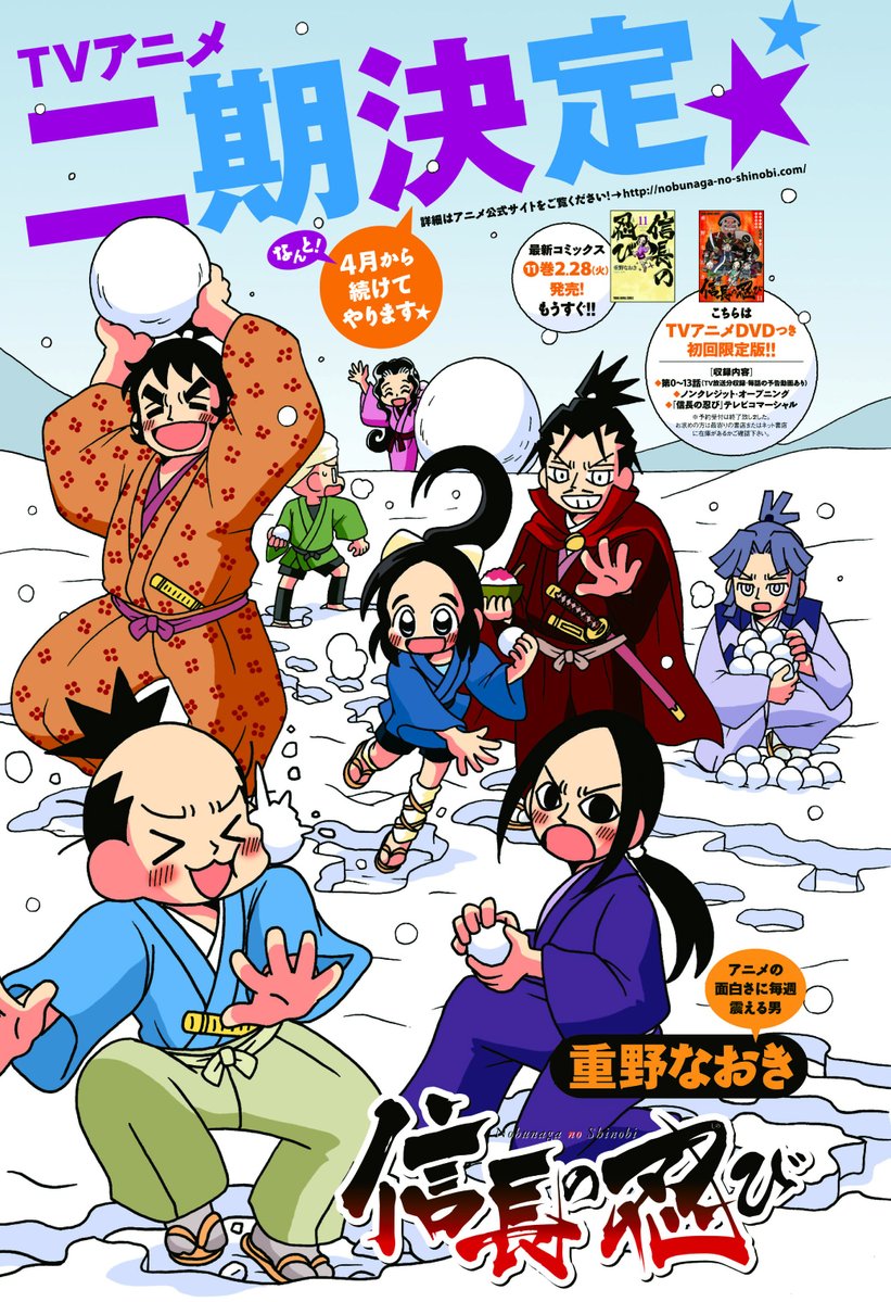 ヤングアニマルで連載中の信長の忍びが10月からTVアニメになります。