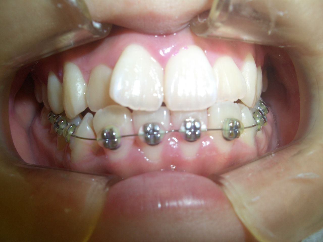 上下の前歯がきれいに並びました。下のあごが少し出るので、固定する時間をとりました。