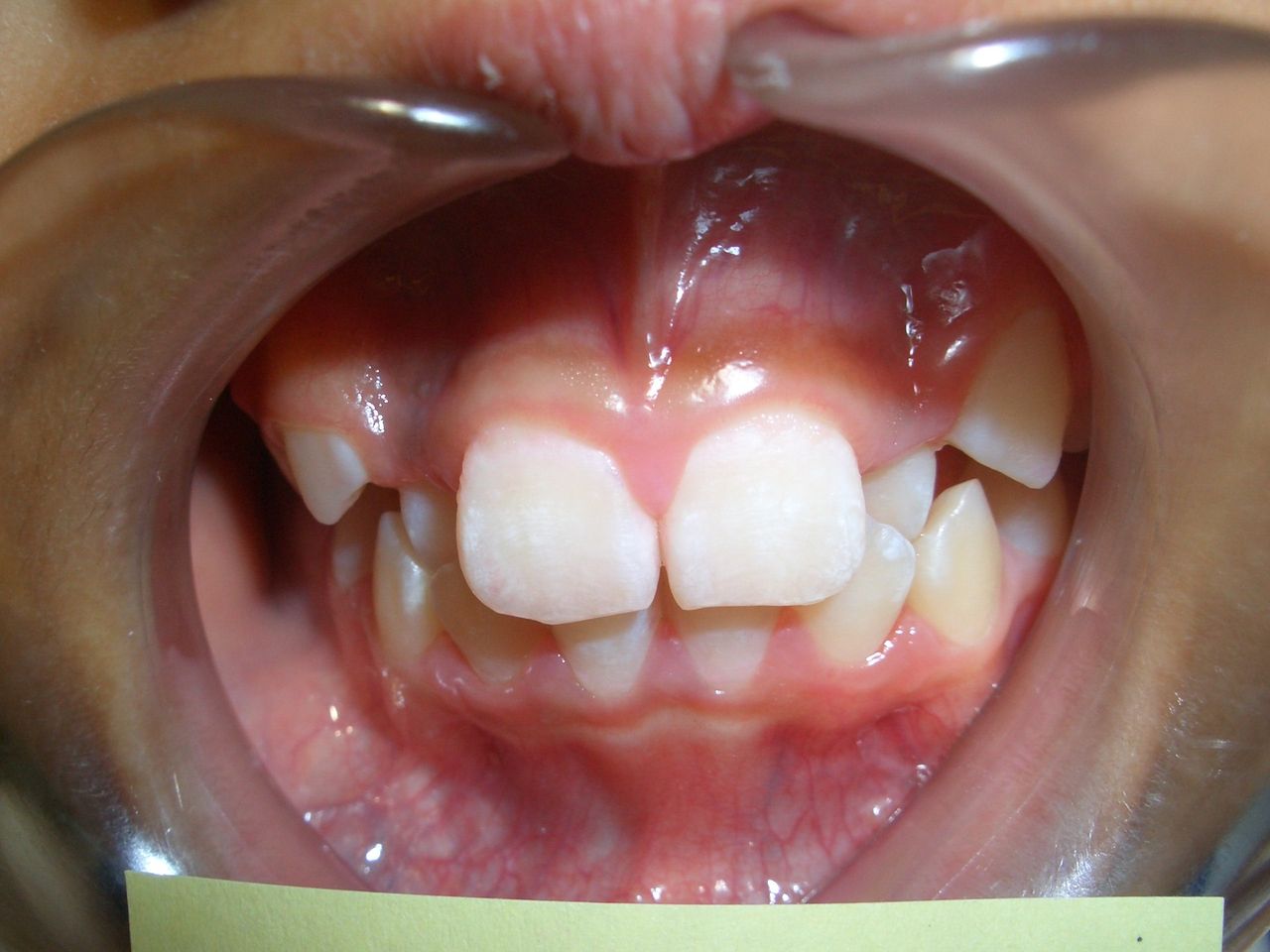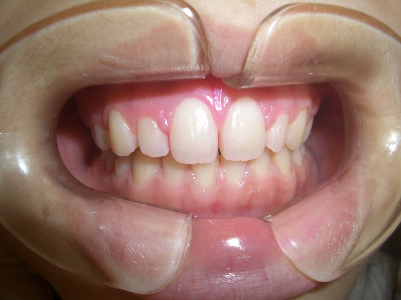 上の前歯が内側に入っていて、下の前歯と交差しています。さっそく矯正治療をはじめました。