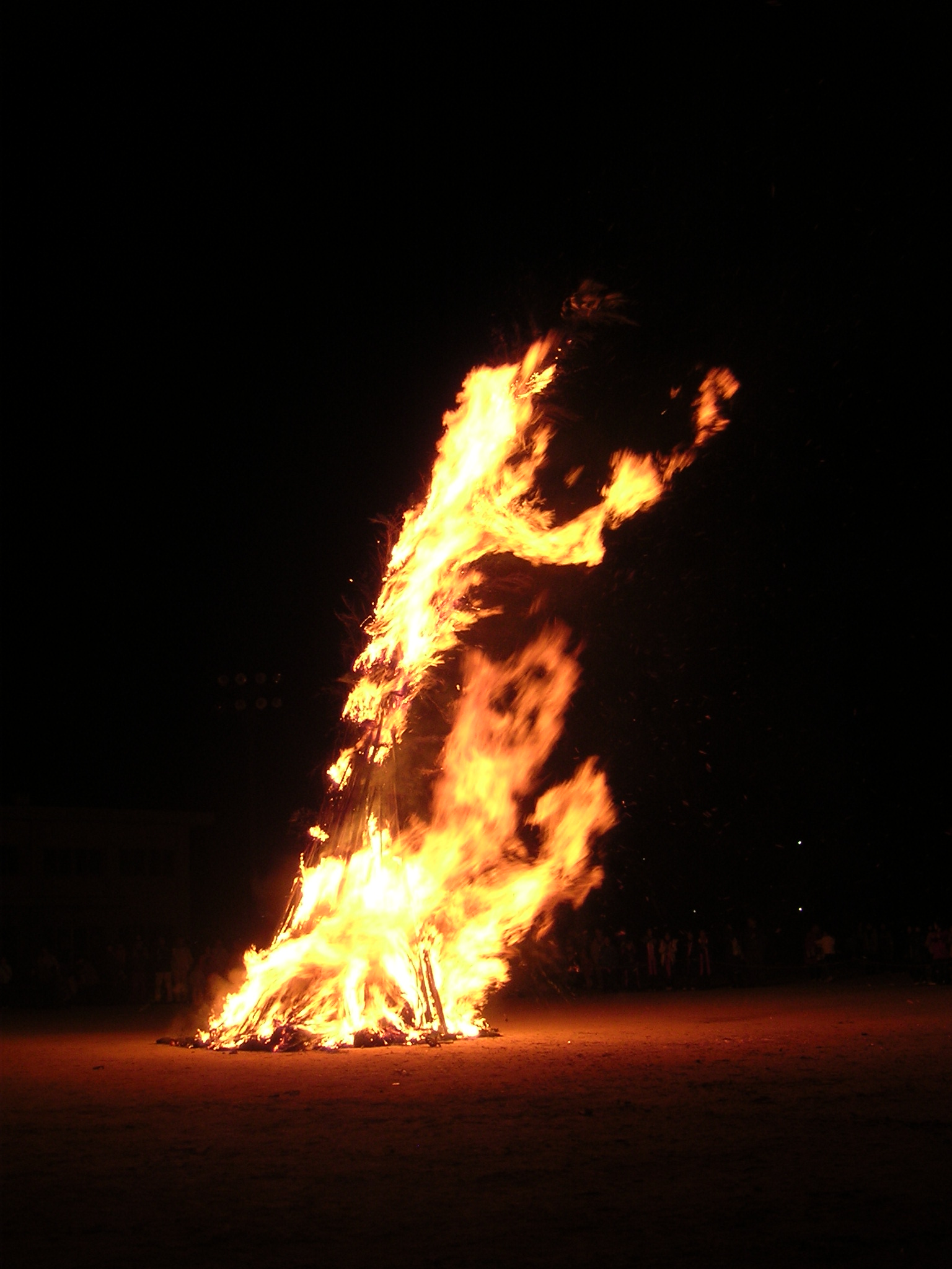 倒れたとんどは、焚き火のようで、寒い夜、みんなで暖をとった。