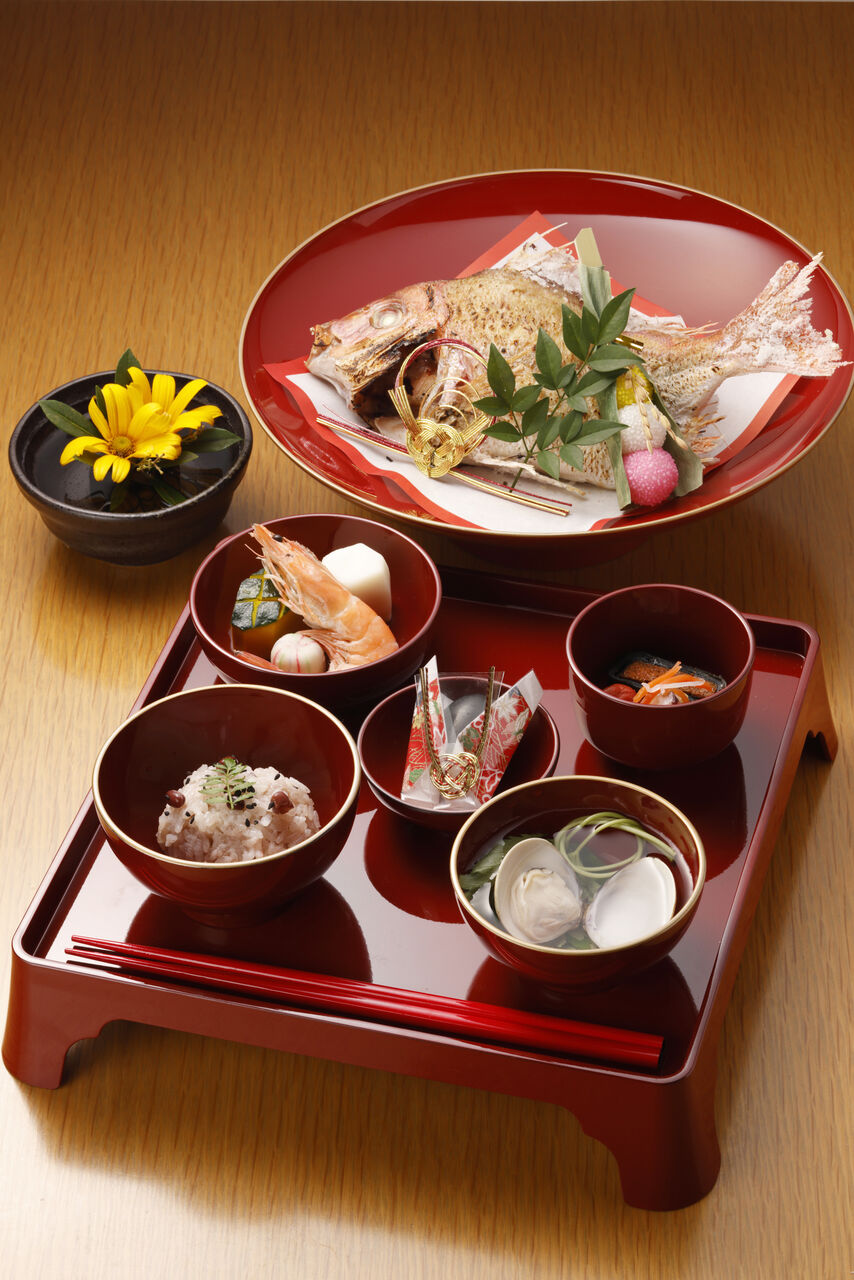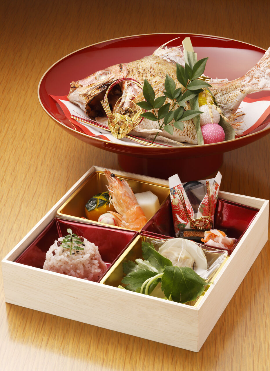 ※鯛が乗っている器は写真用になります。実際には折箱に入れてお渡しいたします。
