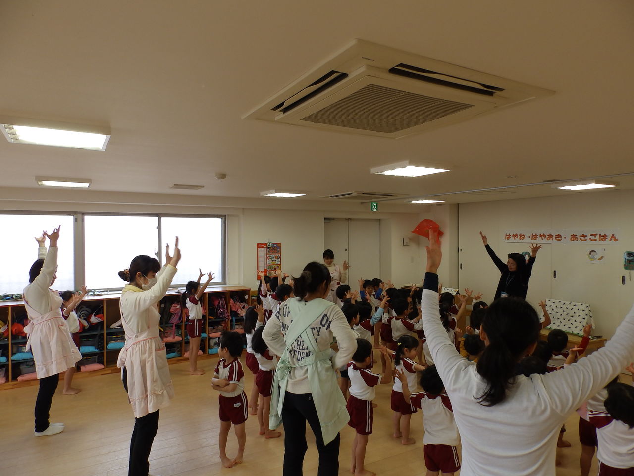 「早寝・早起き・朝ごはん体操」をみんなで元気よく!おこないました。