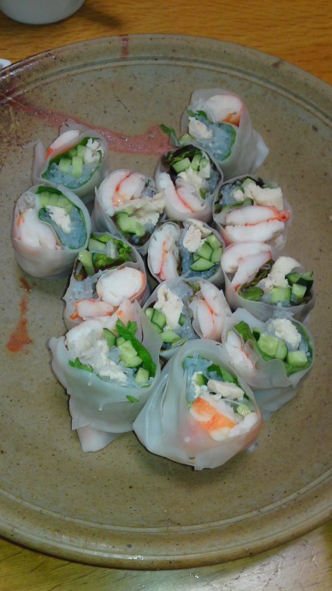 やっぱり時間なく、なんかぱ〜っと手作り料理でもと思いつつ、すぐできる手巻き(できるも何も作ってないか・・・