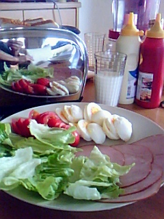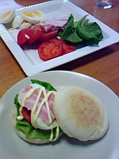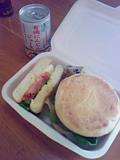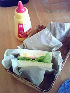 買い物に行ったものの、やっぱり朝方までの縫物やら何やらで寝坊して、あり合わせのおかずに、せめてものラップまきまきサンド。