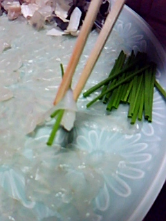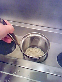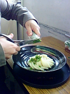 画像は日の出製麺所です。ネギは自分で切って入れる!