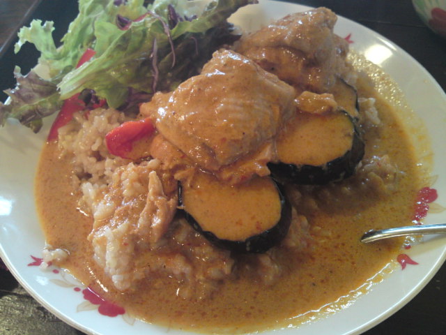 昼はみんなでインドカレー。ベジタブルカレーにナンとチャイ。おいしかった!