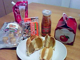 丸ごとりんごパイ、りんごジュース、塩うに、りんごキャラメル、ねぶた漬け、前から気になってたイチゴ煮などなど。