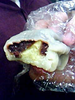 そしてついつい買ってしまう揚げあんパンと牛乳。駅構内のパン屋さんのこのパン。十勝の小豆餡で あっさりした甘さ。(まあ、あっさりと言っても揚げあんパンですから(-_-#))。
