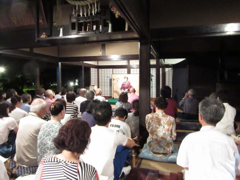 埼玉県入間郡三芳町の民俗資料館で例年行われる「民家で夜語り」の集いに、今年は孫の運転で行ってきました。私たち夫婦と、長女と、孫の3代4人での参加でした。会場の周辺は、都心ではほとんど聞かれなくなった虫の声で満たされ、藁屋根の大座敷には、冷房はなくても涼しい風が吹き抜けていました。