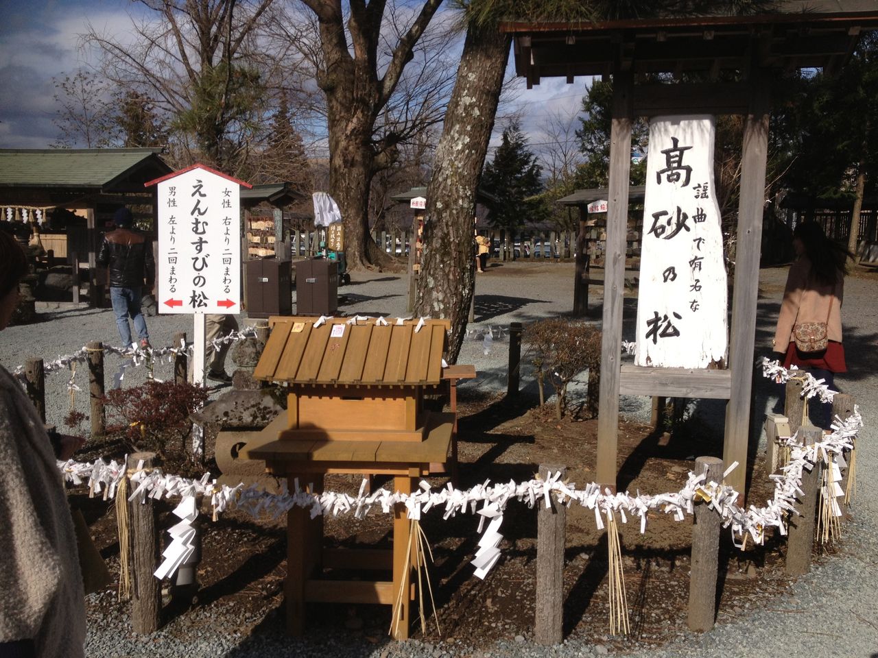 境内には「高砂の松」があり、縁結びの神様として有名である。