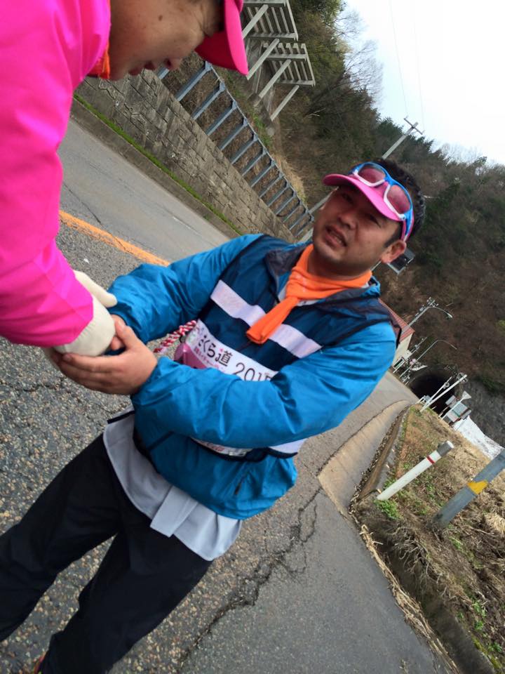 30km過ぎのエイドで、完走証をウッチ~に預けた