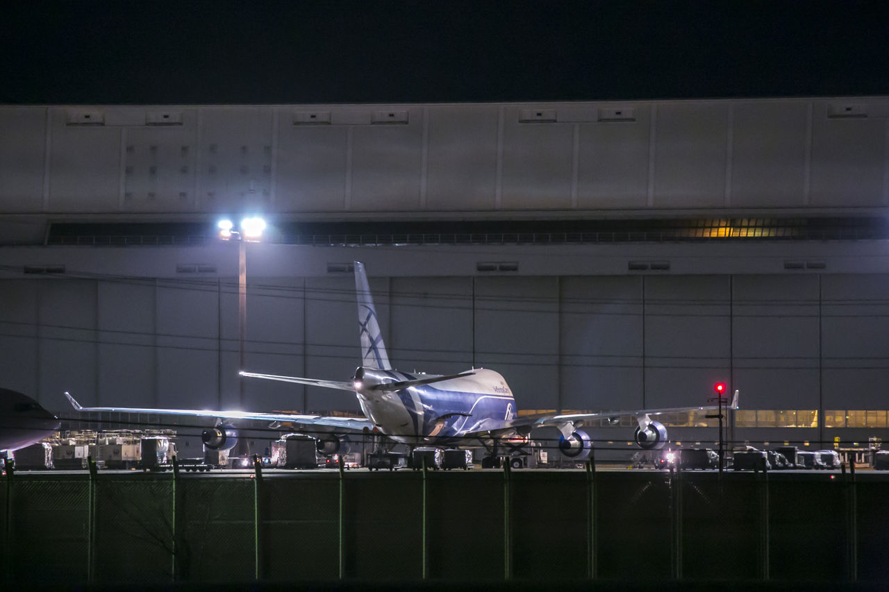 元々はブリティッシュエアウェイズワールドカーゴ(BAWC)がアトラス航空によって運航していた機体でした。なのでブリティッシュエアウェイズのカラーリングだったんですね。2014年4月に運航を終了して再塗装せずロゴ等のみ剥離したためこのようなお姿になっております。