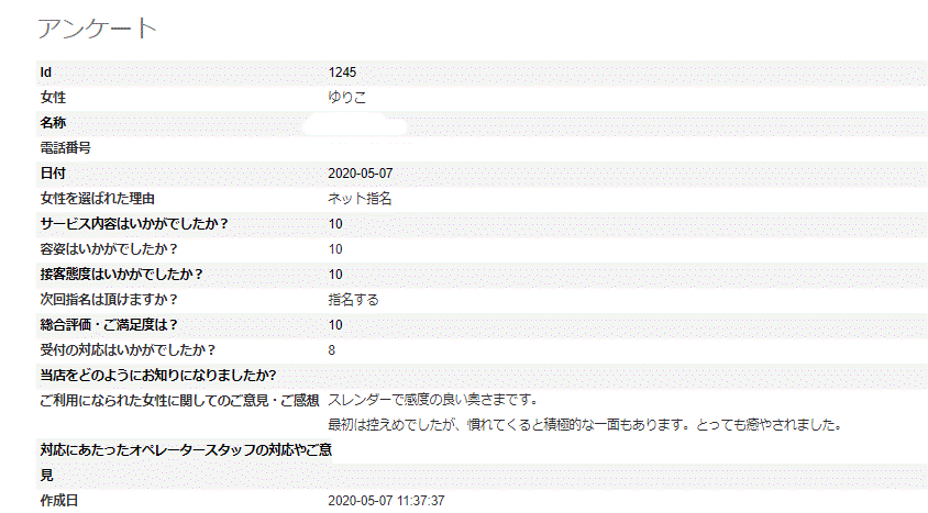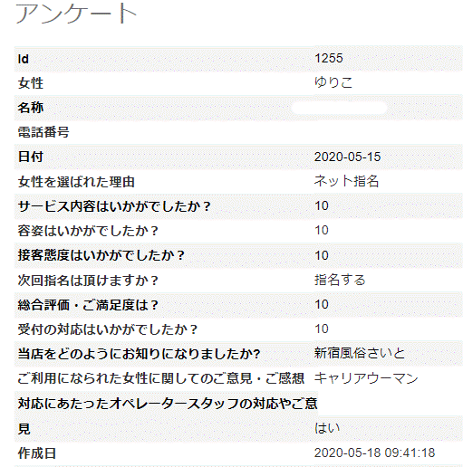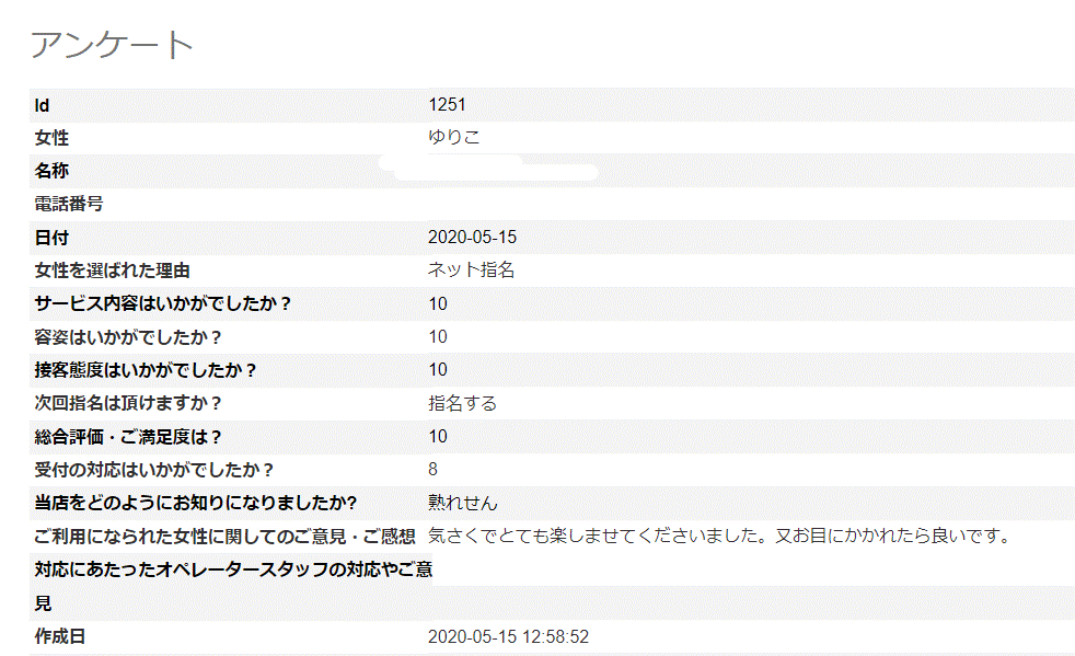 2020年05月19日 ゆりこさん アンケート③ 5/19更新 Y様 この度は、10点満点の評価ありがとうございます。次回も、ご指名もありがとうございます。ご満足頂きまして、ありがとうございました。当店は、実技講習がないお店なので、次回アンケートいただける際はもう少しどこが良かったかお教えいただけましたら助かります。今後ともどうぞ宜しくお願い致します。出勤は少ないですが、ぜひまたのご利用おまちしております※次回はアンケート割でご案内させていただきますので受付時に「アンケート割で」とお伝え下さいませ。ただし同じ女性のアンケート割引は適用外となりますm(__)m