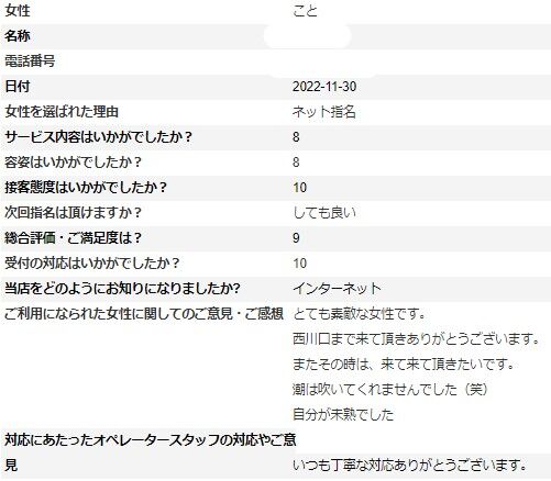 2023年01月28日 ことさんの🈠アンケートです♪ Y様 いつもご利用ありがとうございます。さらに、お手数をおかけして貴重なご意見ありがとうございます。アンケートの掲載が遅くなり申し訳ございません。※次回はアンケート割でご案内させて頂けますので受付時に「アンケート割で」とお伝え下さいませ。ただし同じ女性のアンケート割引は適用外となりますm(__)m