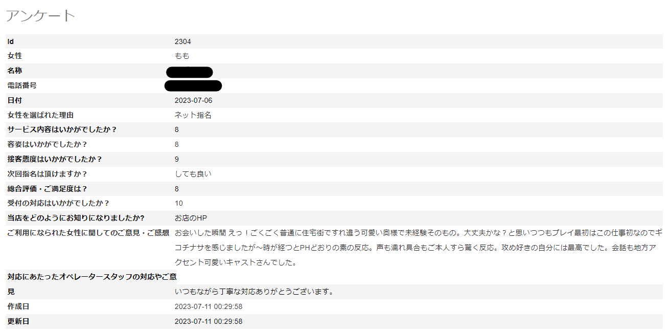 2023年10月19日 ももさん アンケート① 10/19更新♪ S様 いつもご利用ありがとうございます。さらに、お手数をおかけして貴重なご意見ありがとうございます。※次回はアンケート割でご案内させて頂けますので受付時に「アンケート割で」とお伝え下さいませ。ただし同じ女性のアンケート割引は適用外となりますm(__)m