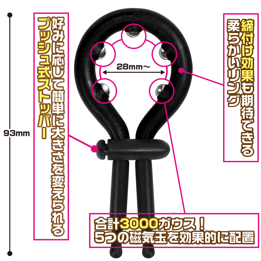 合計3000ガウスの磁気玉を効果的に配置した装着感バツグンのサポートリング。
