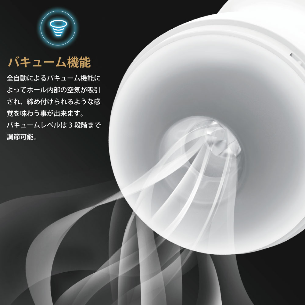 ウォームアップ機能と三段階のバキューム機能・4種類のバイブレーション機能であなたの好みに合った最高の気持ちよさを再現します。