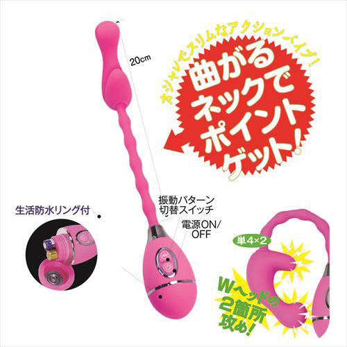 Wヘッドの2箇所攻め、携帯できるスリムなバイブです!