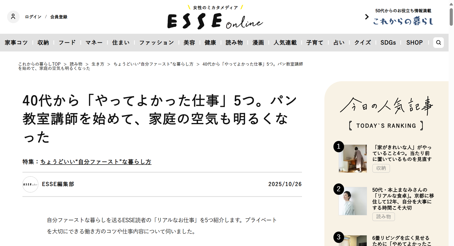 雑誌「 ESSE」に掲載していただいてから