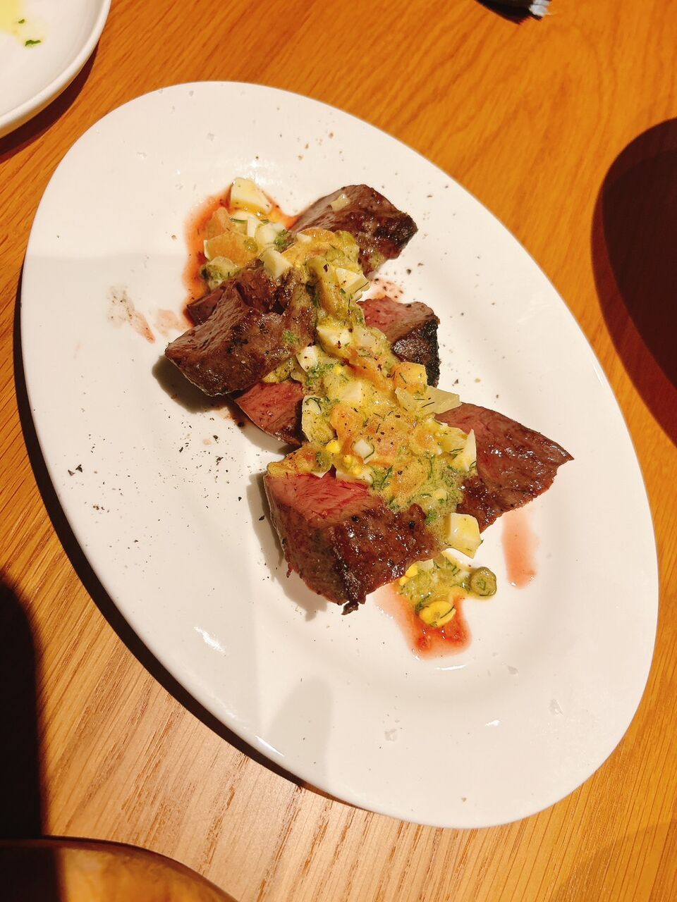 さっぱりとしたラビゴットソースが北海道産の鹿肉を包み込んでいます