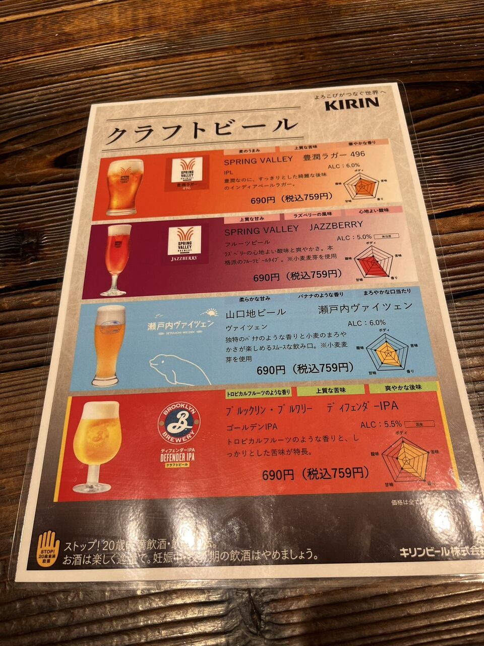 クラフトビールメニューです。