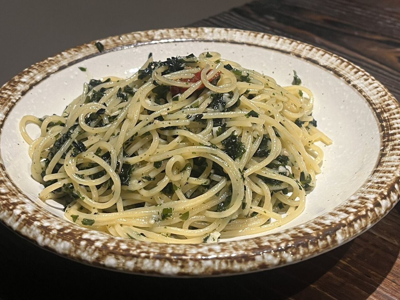 ピリ辛の和風パスタ。