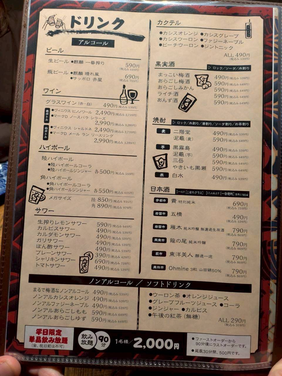 ドリンクメニューはこちらです。