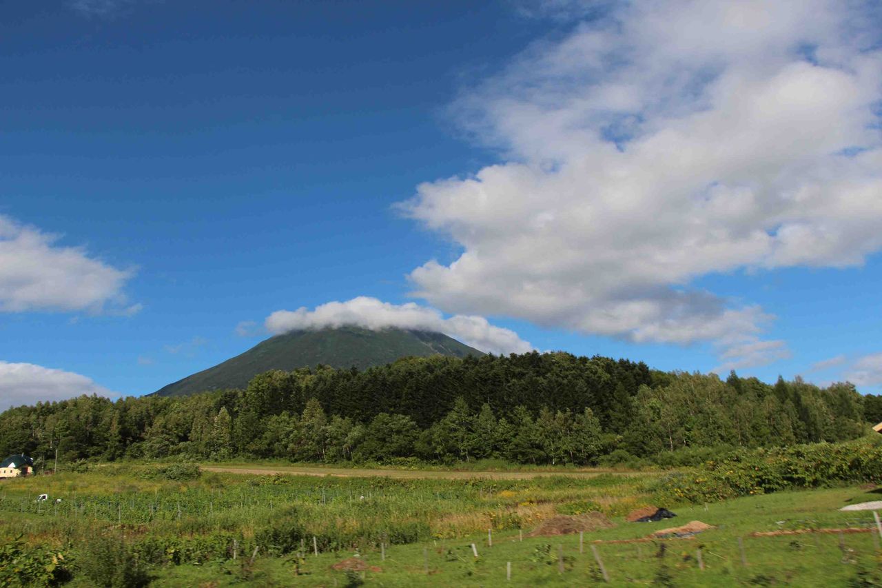 ダケカンバの林を抜けて尾根に出ると、まず目国内岳と、蘭越町あたりの内陸の景色が目に飛び込んできます。