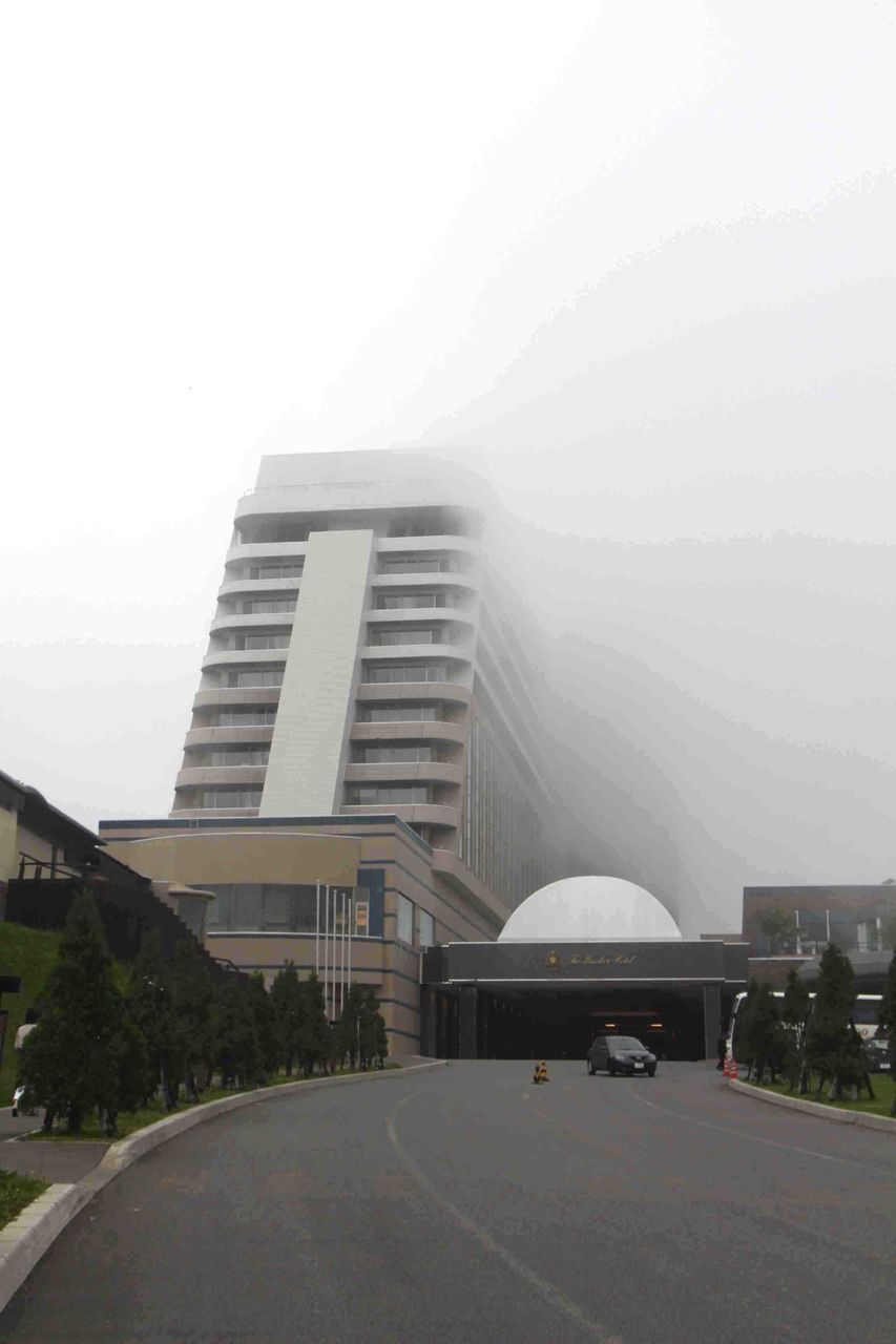 山の下からホテルを見上げると、ガスがすっぽりホテルを包み込んでおりました。こんなことじゃあ到底、わたしは洞爺湖を客観的に見ることができないんです。あなたとは違うんです!