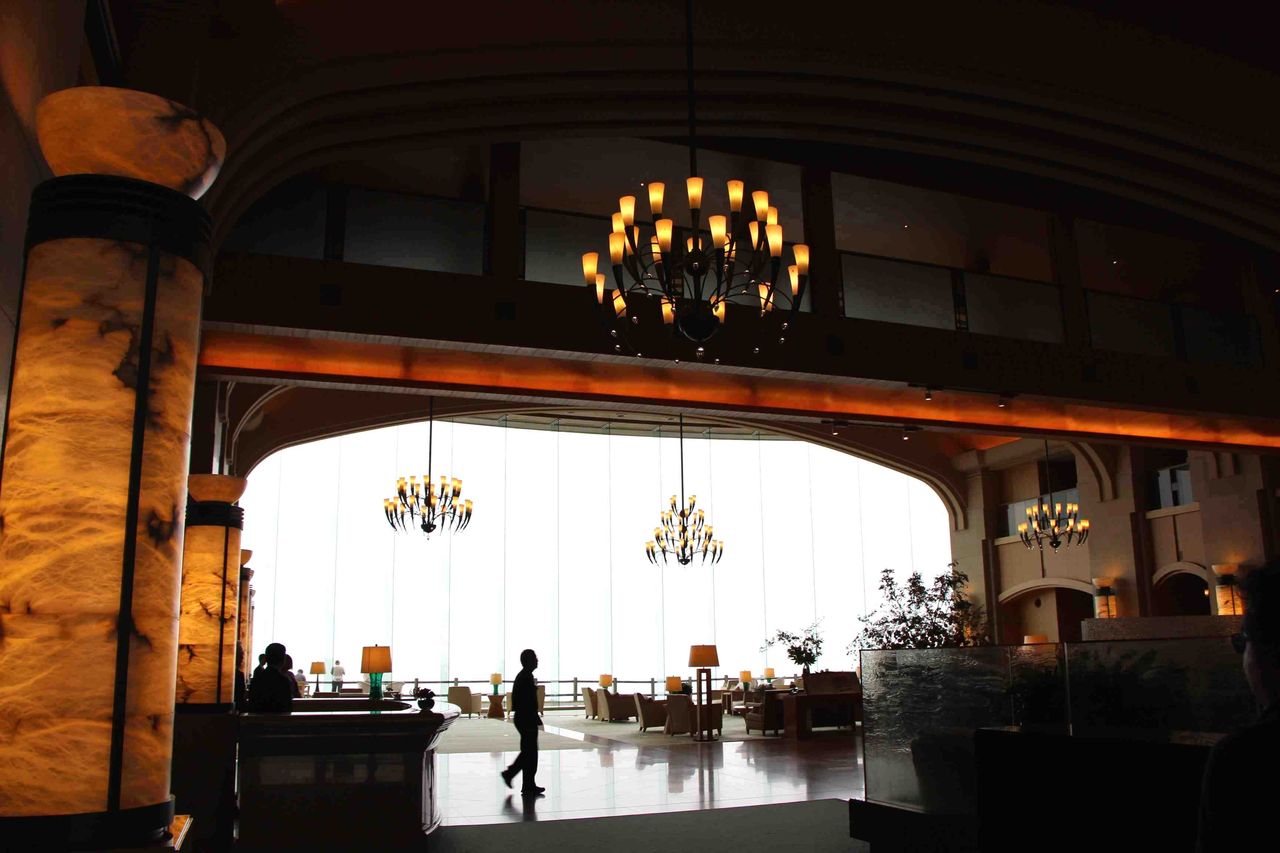 えらい長い取り付け道路を登って、すばらしい洞爺湖の眺望が楽しめるというウィンザーホテル洞爺にたどり着きました。