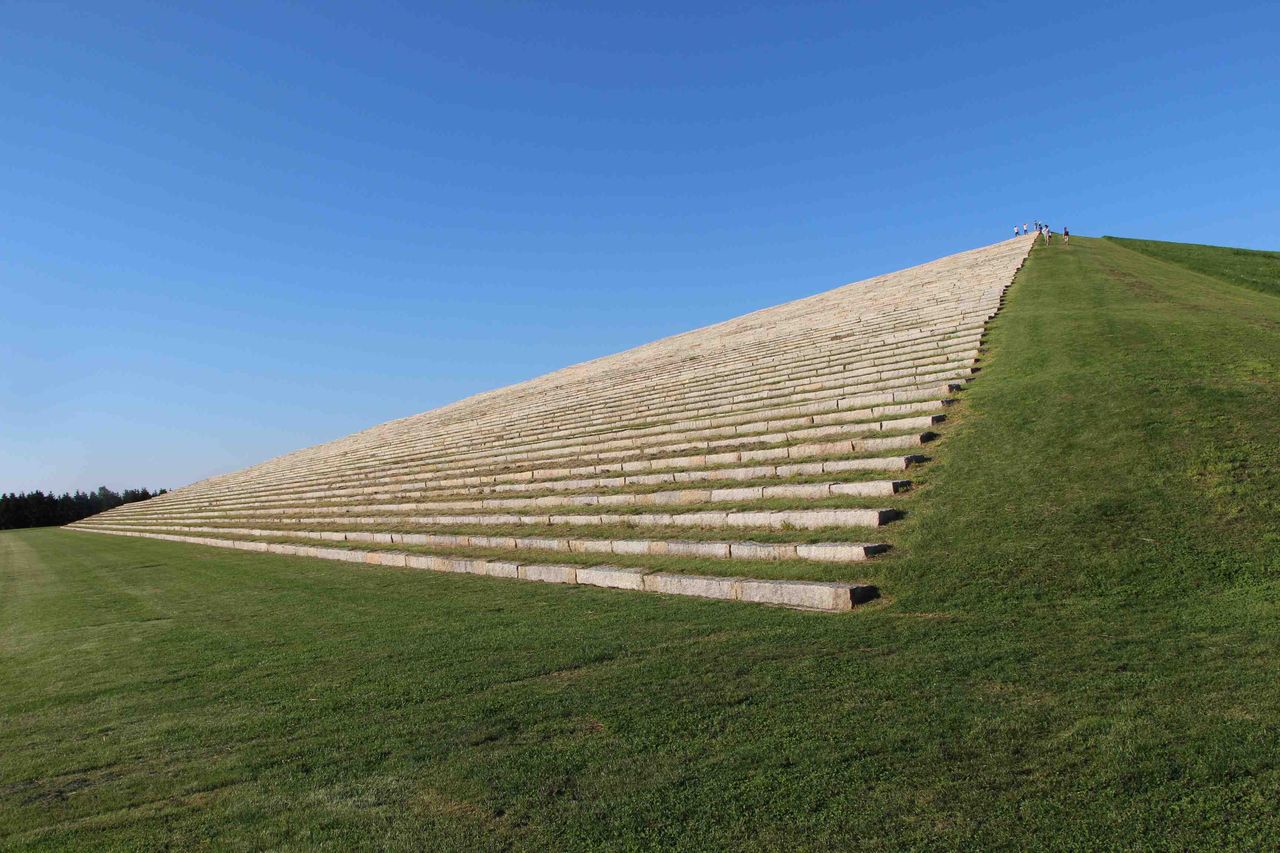施設としては、美術展示に使える3階建てのピラミッド型の建物と、一日に何回か時間を決めて噴出する「海の噴水」という名前の巨大噴水、ゴミの塊であろういくつかの巨大な山、野球場、陸上トラック、テニスコートなどがあります。