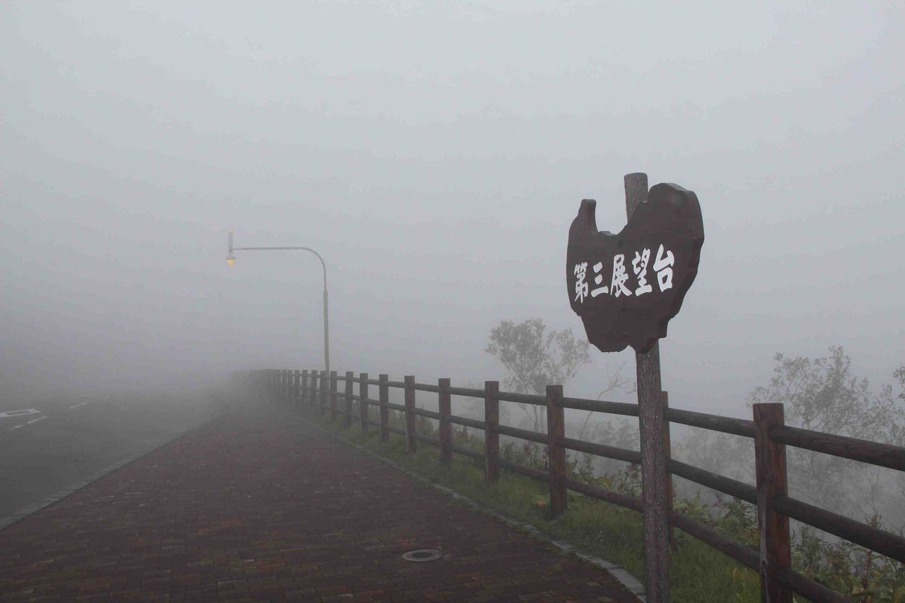 道を渡ると階段があって、展望施設があり、「摩周湖」と書いてあるので、恐らく自分が、あの有名な摩周湖にいるのだとは思うのですが、なんせ10メートル先もガスで見えないのでなんの感動もありません。しかしながらここまで見事に見えないと、かえってすがすがしいくらいです。