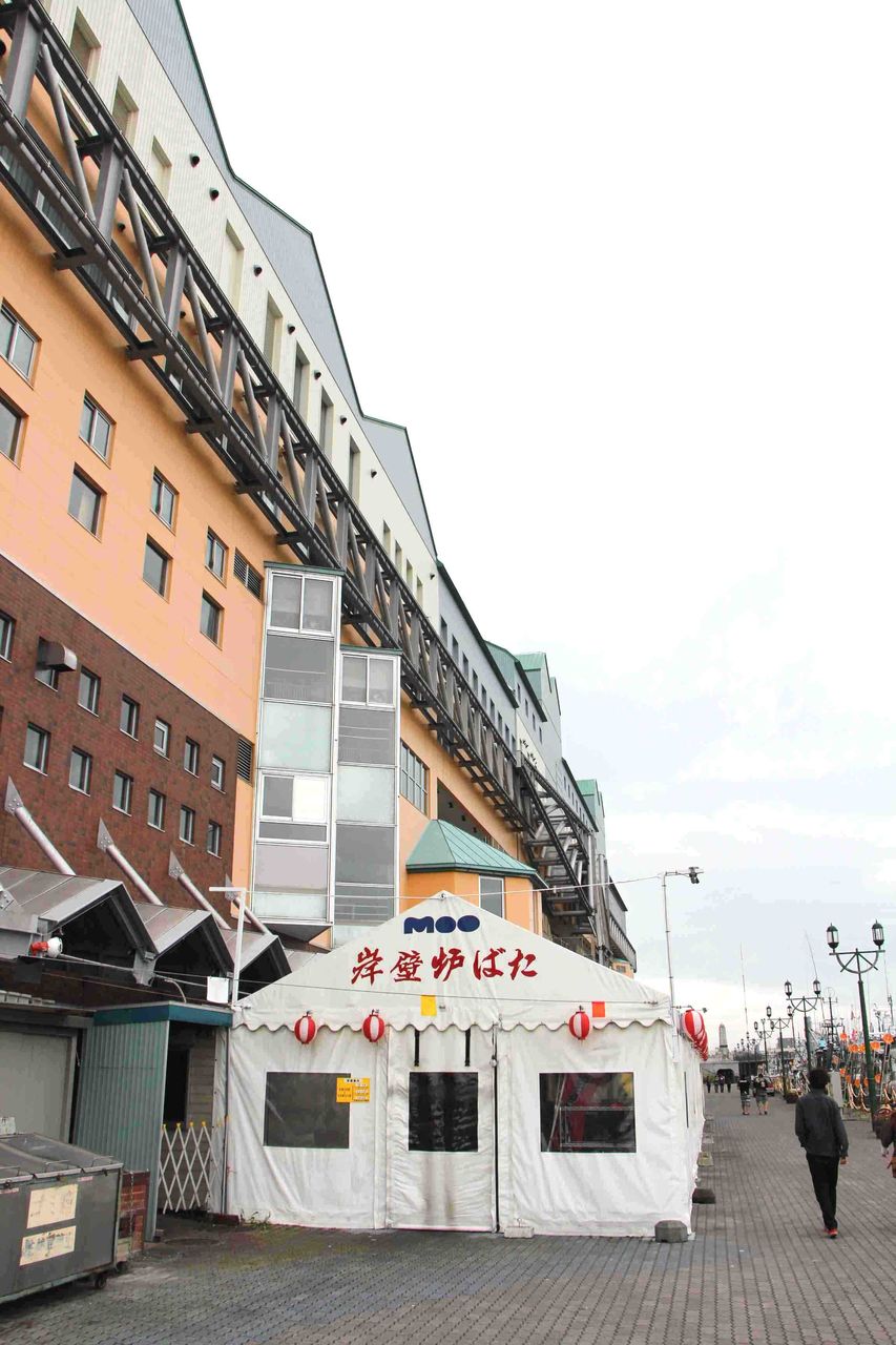 建物前の埠頭には、大船渡など東北や道内から来たイカ釣り船が停泊しています。