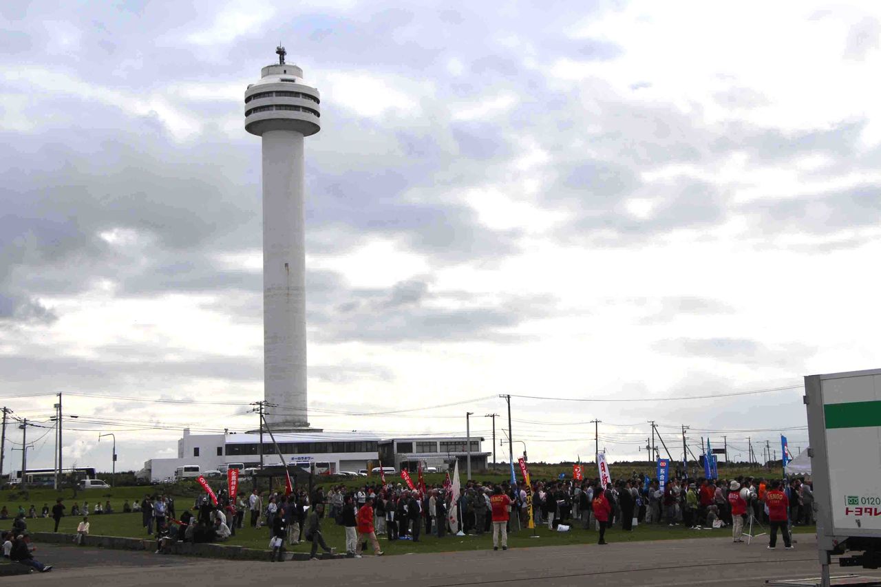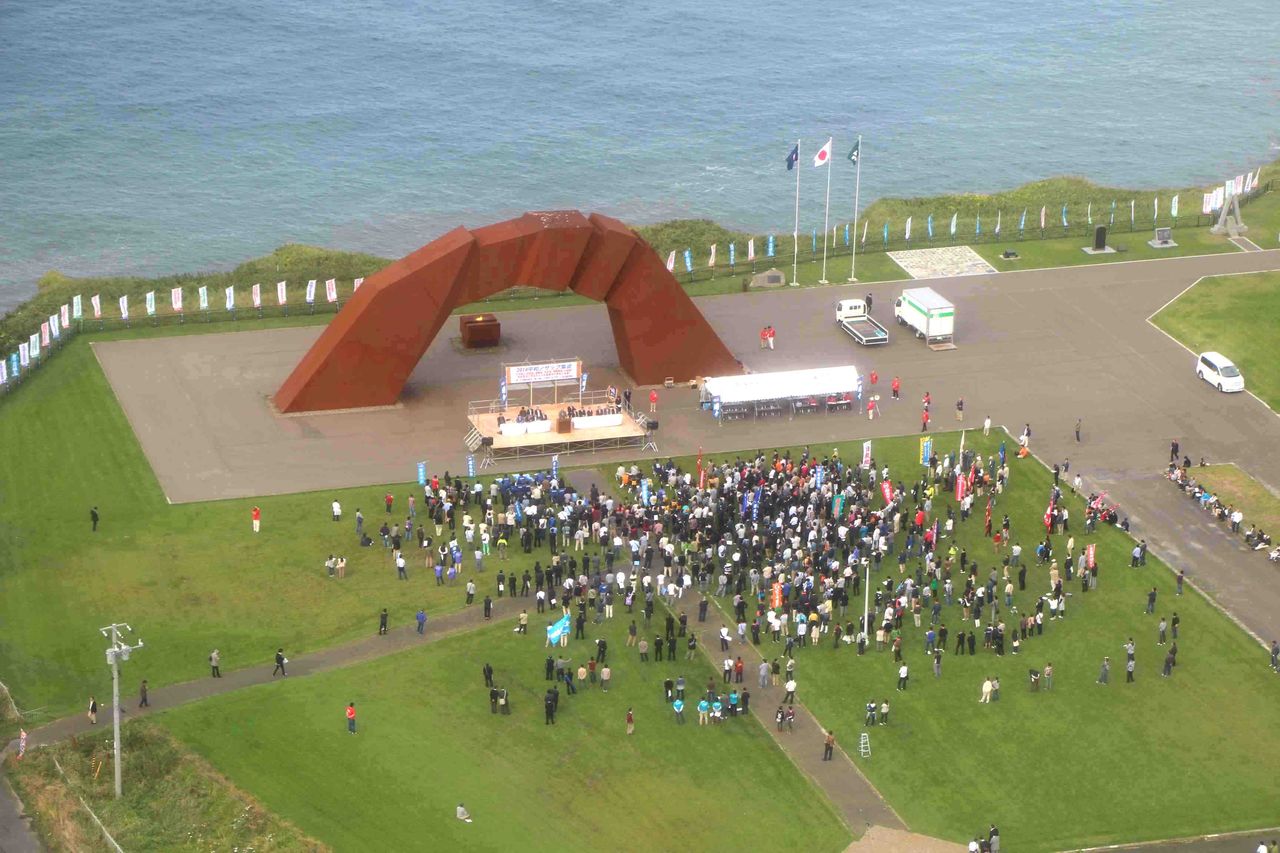 「四島のかけ橋」という巨大なモニュメント前の広場では、うざいことに連合が集会をやっていて、バスで何百人かがやってきて、パフォーマンスの真っ最中でした。一応「北方領土を返せ」と言ってました。どこまで本気か知りませんが。元島民も話していました。