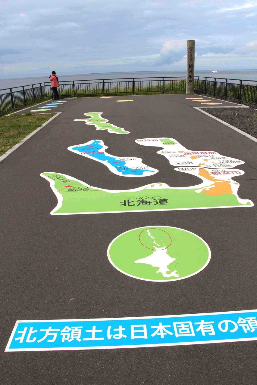 風蓮湖を見ながら延々と走って、寒々しげな根室市内を通り抜け、ますます寒々しくなって緑も山もない北の大地を延々と走って、花咲や歯舞の漁港や集落を通り抜け、だんだん道端で「返せ北方領土」とゴマアザラシが訴えている看板や旗の数が増えてきて、なんだか遠くの方から白い大きな展望台が見えてきたら、そこが納沙布岬。