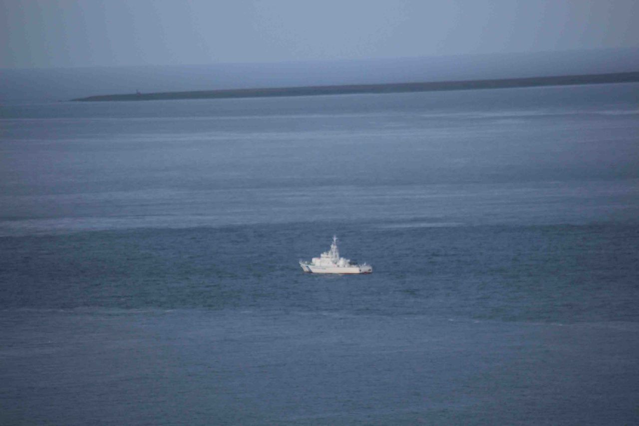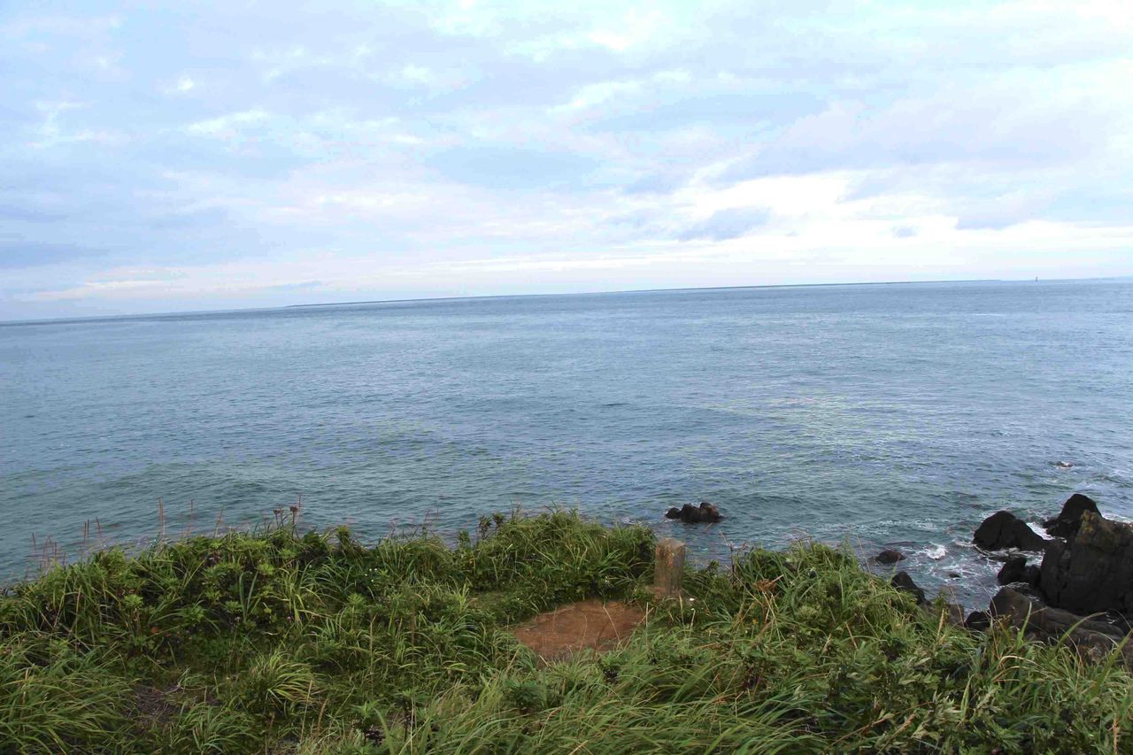 さまざまな愛国団体が建てた石碑の向こう側に、指呼の間に見える歯舞諸島の島の間を、海保の巡視艇が一隻遊弋しています。貝殻島までわずか3.7km、水晶島まで7キロです。あれが北方領土か!
