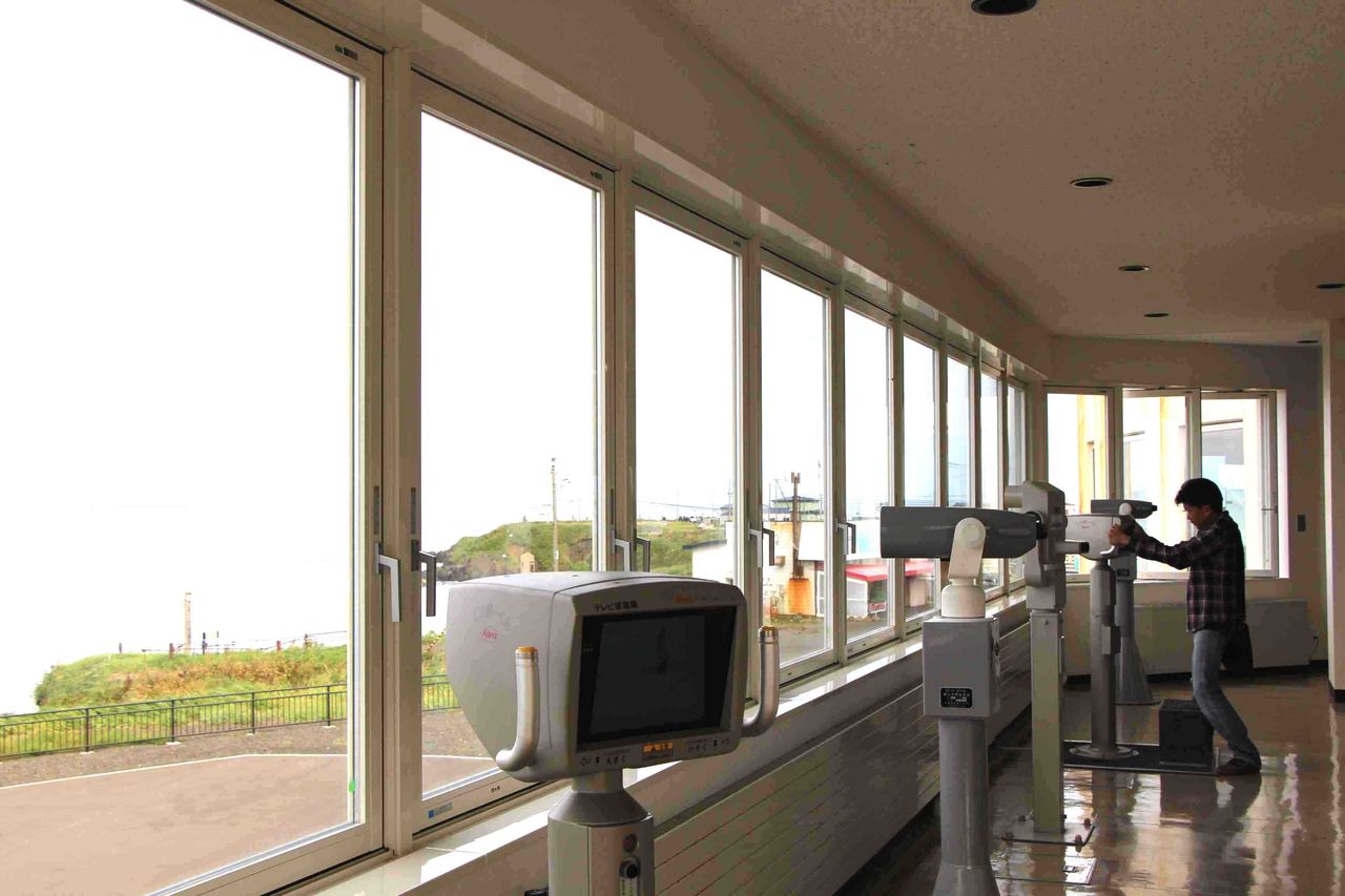 その横にある「望郷の家」を覗いて、北方領土返還署名をします。二階には望遠鏡がずらっと並んでいて、歯舞の島を見ることがで来ます。北方領土には1万7000人を超える日本人が住んでいました。