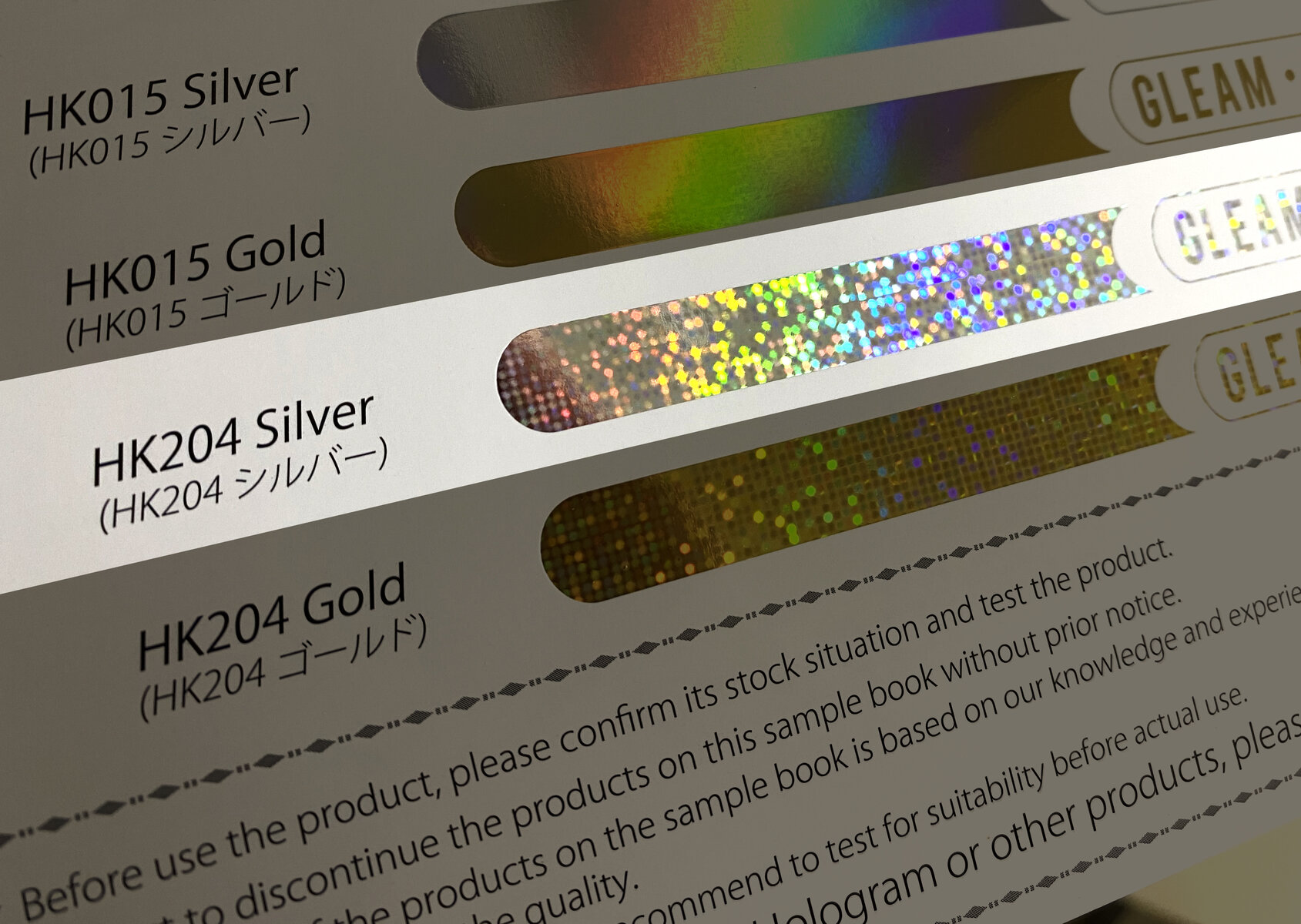 光の粒が集まったミラーボールのような箔「HK204シルバー」をはじめ、安定の金消し101、爽やかなスカイブルーも!特色インキとのコンビネーションも楽しめるようセレクトしてみました。