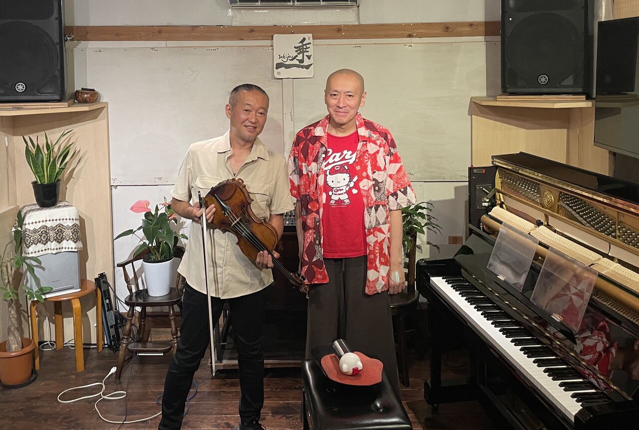 5.17.@ピットインへ向けての「かすみ弦楽ラボ」のリハがありました。かすみは譜面を使わないので、リハと言っても何かのチャートやパート譜をしっかり練習、という事はありません。メンバー通しの違いをしっかりと体感し合った上でいかに即興的にアンサンブルを作っていけるか。セッションを重ね、アドリブを出し合い、同じ時空間を過ごす事でバンドとしてのグルーヴを追求しています。今回はスペシャルゲストに、須川崇志さんをお迎えします。