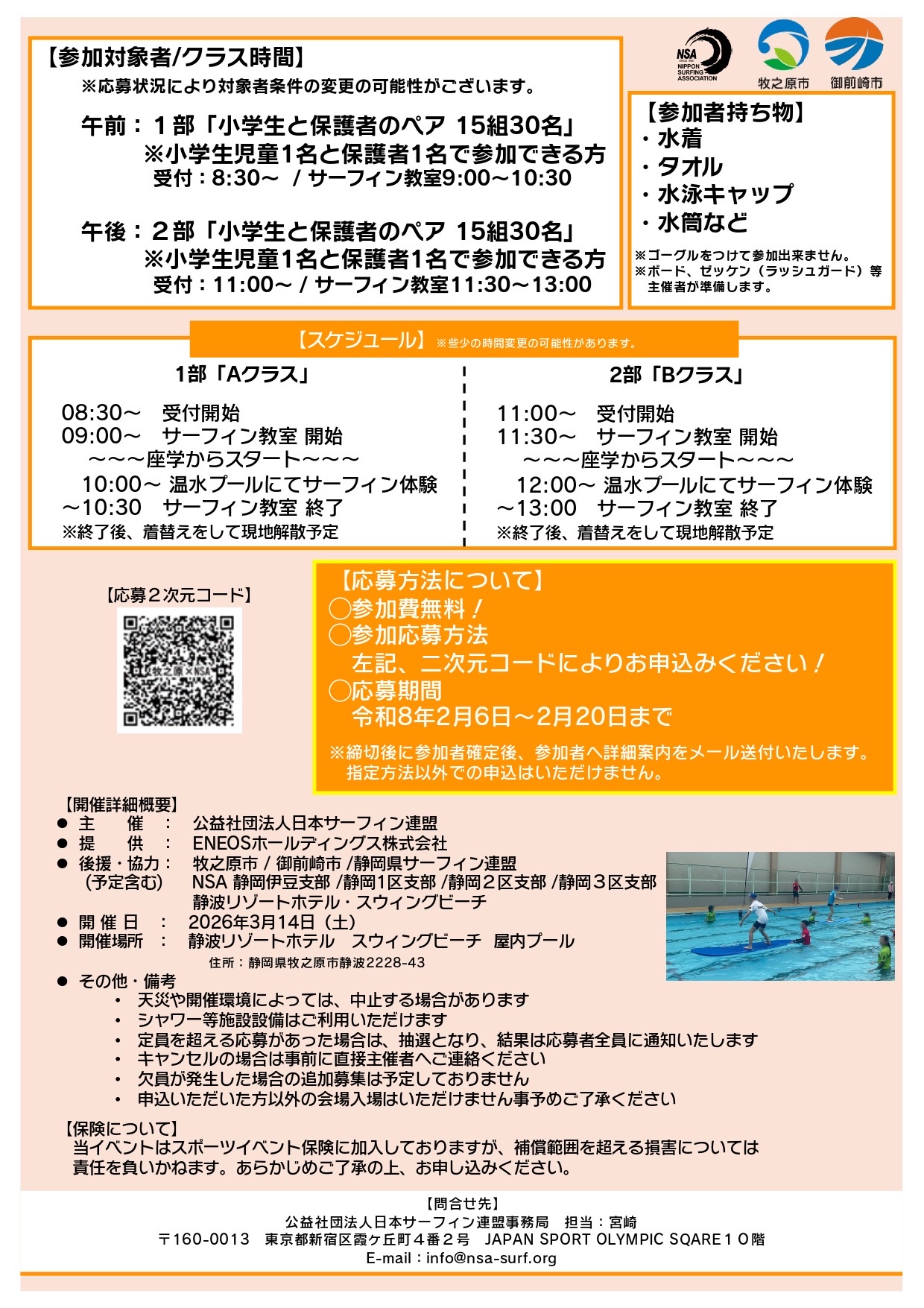 サーフィン体験教室のお知らせ