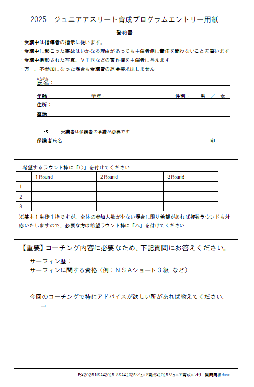 2026年度NSA公認大会への繰入(2025年と同額とさせていただきました。)