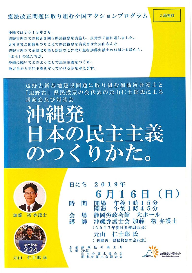 という講演及び対談が行われます。私も静岡県弁護士会の憲法委員会に所属する弁護士として