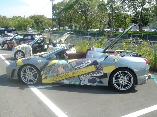 痛車(いたしゃ)とは、ゲーム・アニメ・漫画などのキャラクターを、車に塗装またはシールを貼り付けたものです。