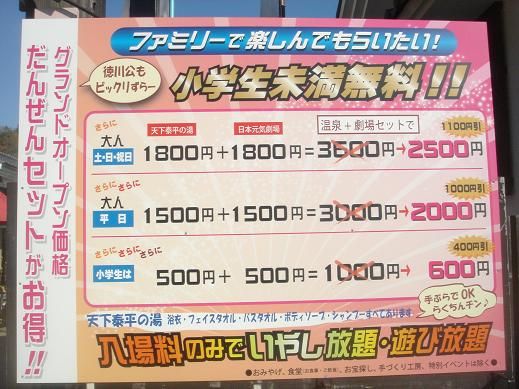 大人も子供も、セット券(「天下泰平の湯」+「日本元気劇場」)がお得です。