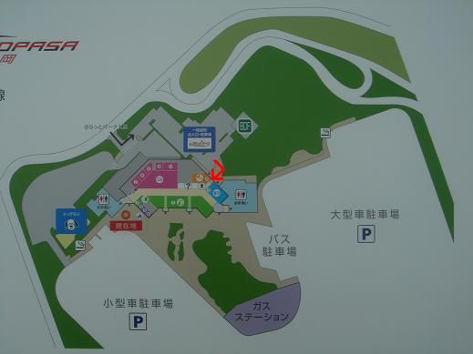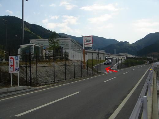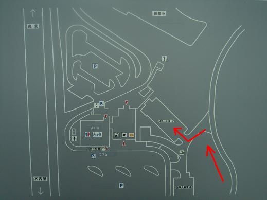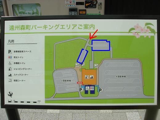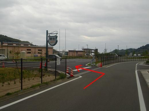 赤矢印の場所から、青線で囲った一般道から利用可能な無料駐車場(ぷらっとパーク)に入る。