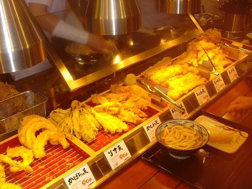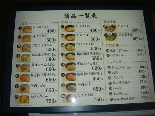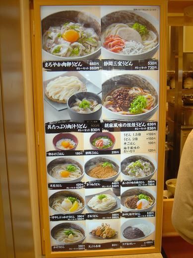 ざるうどん、ちく天うどん、海老天うどん、安倍川うどん