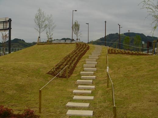 商業施設とトイレ棟に囲まれた空間は、宿場町をイメージしたものです。